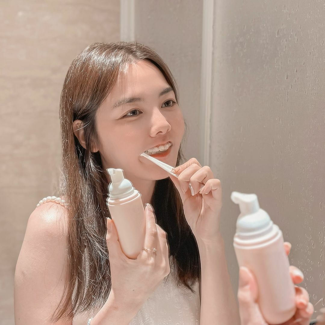在外刷牙不需要沾水就能靠幕斯直接清潔真的好方便😍