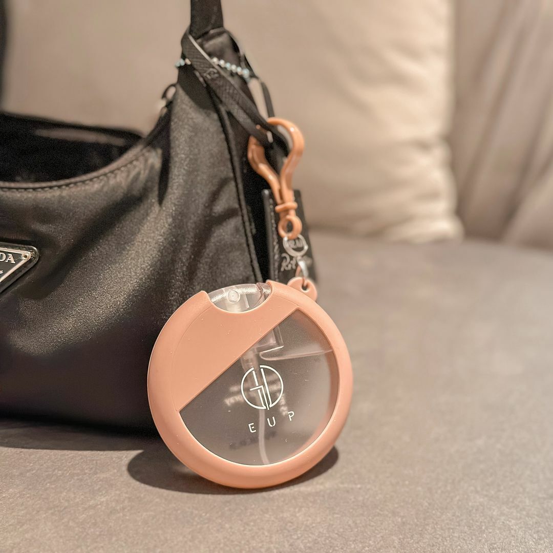 小圓餅型的抗菌噴霧附掛勾直接掛包包真的很方便